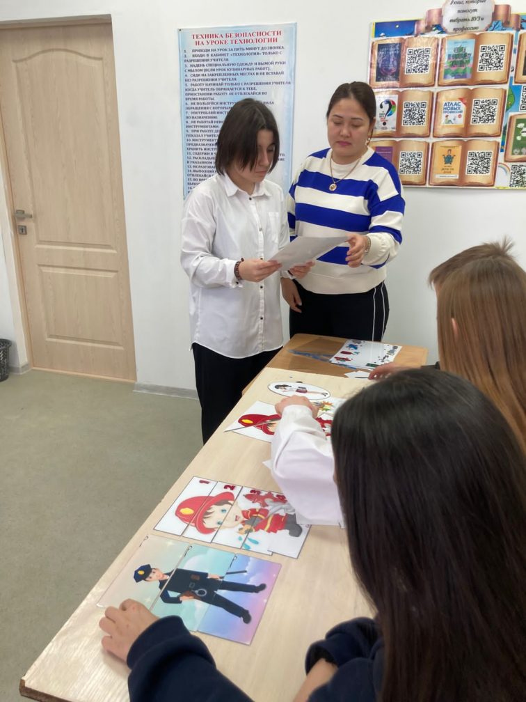 9 сынып оқушылары арасында мамандық таңдауға деген қызығушылықтарын арттыратын әрі бірлік пен ынтымақтастықты бейнелейтін әртүрлі мамандықтар туралы мысалы: дәрігер, мұғалім, ұшқыш,өрт сөндіруші ""Мамандықтар қандай көп...", "Маңызды мамандықтар" атты сынып сағаты өткізілді.Сынып сағатында оқушылар әртүрлі мамандықтар туралы крассвордтар мен пазлдар құрып,өз жұмыстарын қоғады.Бұл жұмыс арқылы олар әр мамандықтың қоғамдағы орны мен маңызын түсініп,шығармашылық қабілеттерін дамытты.Топпен бірлесе жұмыс істеп ,бір-біріне қолдау көрсетіп,өз ойларын еркін жеткізе білді.
